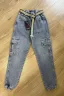 Стильные голубые джинсы на резинке с накладными функциональными карманами по бокам. Сочетайте вещь с любыми футболками и рубашками и получайте новые крутые образы на каждый день Текстильный ремень в комплекте.