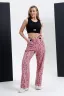 Брюки прямые, с боковыми карманами, на поясе. Боковые вставки пояса выполнены из кашкорсе с лампасами.