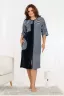 Халат женский домашний, средней длины на молнии, с комфортной посадкой по фигуре. Украшением изделия служит комбинирование тканей: полоска и однотонная ткань. С одной стороны полочки - отрезная кокетка с накладным карманом сверху и снизу.