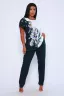 Женский костюм с брюками - идеальный вариант как домашней одежды, костюма для прогулок и путешествий, но так же и как пижама для сна. Для пошива используется ткань со 100% содержанием хлопка. Идеальное лекало костюма позволит подчеркнуть все достоинства фигуры, в то же время модель не сковывают движений и позволяет чувствовать себя комфортно в любых условиях. Особую изюминку изделию придает эффектный дизайн в виде сочетания двух контрастных друг к другу цветов, место стыка которых декорировано изображением прекрасного букета. Так приятно в конце рабочего дня сменить повседневный офисный костюм на такую мягкую и приятную трикотажную одежду!