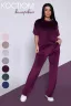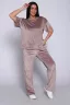 Костюм очень удобный, мягкий материал приятно ощущается на теле. Мне понравился фасон - свободная футболка и прямые брюки идеально сидят. Цвет бежевый спокойный, подойдет для любого случая. Единственный минус - резинка на поясе немного пережимает талию.