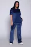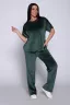 Костюм женский велюровый, повседневный, всесезонный. Костюм состоит из футболки и брюк. Футболка оверсайз прямого силуэта, длиной до бедра. Рукав втачной со спущенным плечом, длиной чуть выше локтя. Горловина с обтачкой, низ футболки с подгибкой. Брюки прямого силуэта, умеренного объема. На передних половинках брюк карманы с отрезным бочком. Пояс притачной с эластичной тесьмой. Низ брюк подгибка. Замеры объема талии брюк по нерастянутой резинке. Параметры модели 97-71-101. На модели представлен 48 размер.