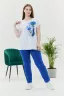 Костюм футболка из кулирки + брюки из кулирки с лайкрой. Принт в виде цветка из брызг и потеков краски на белом фоне. Брюки однотонные, с карманами по бокам