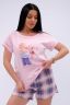 Пижама женская состоит из футболки с коротким рукавом и шортов. Футболка из однотонной кулирки с красивым принтом, шорты свободного покроя из ткани кулирка.