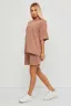 Женский спортивный летний костюм выполнен из плотной ткани - хлопок: футер 2х нитка петельчатый, качество премиум Пенье . Комплект с шортами и футболкой- это настоящий ХИТ этого сезона. Свободная футболка оверсайз с коротким рукавом и шорты свободного кроя выше колена на широкой резинке высокой посадки, внизу с разрезами на внешней стороне материала и боковыми карманами- хорошая замена теплому или утепленному брючному костюму, платью на лето. Вы сможете носить современный, модный и комфортный костюм, как спортивную одежду на тренировки, спорт, фитнес и йогу и как спортивная школьная форма для девочек и мальчиков подростков. а также это удобная одежда для дома и загородного отдыха. Вам не будет слишком жарко, из-за сочетания дышащего материала и свободного кроя в спортивном костюме. Футболка идеально сочетается с джинсами, юбкой и брюками, а шорты с лонгсливом, свитшотом, топом. Выберите для себя удобный размер – изделие отлично сядет на любой тип фигуры и ростовку. А также трикотажный материал, комфортный крой и выверенные лекала сделают данную модель незаменимым для полных девушек (плюссайз), беременных мам, женщин, девочек и подростков. Наш костюм универсален и для модниц с пышными формами, а также высоких и невысоких. Вы сможете использовать его как повседневную вещь на работу и учебу, на прогулку и отдых. Стильный летний комплект подойдет для повседневной носки, домашней одежды, прогулок с собакой, занятий спортом в тренажерном зале как в летний так и в зимний период, также - для игры в теннис, волейбол, баскетбол. Чтобы сохранить первозданный вид костюма-двойки, рекомендуем соблюдать правила ухода: первая стирка отдельно от других вещей в прохладной воде , дальнейшие стирки при 30 градусах, в бережном режиме (до 400 оборотов). Предпочтительно для стирки ГЕЛИ, а не порошки. Гладить футер можно в деликатном режиме