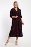 Платье женское свободного покроя. Воротник отложной рубашечного типа, образует V-образный вырез. Платье с карманами в боковых швах. Длина платья чуть выше щиколотки. Рукав 3/4 с манжетой, поднят патой.