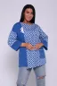 Стильная женская туника из комбинированного футера со спущенным плечом. Рукав 3/4 с отделочной деталью по низу. На полочке накладной карман. Декор - пуговицы. Можно комбинировать как с брюками, так и с юбкой.
