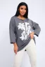 Туника женская свободного кроя со шнурком на горловине и печатью на передней полочке.